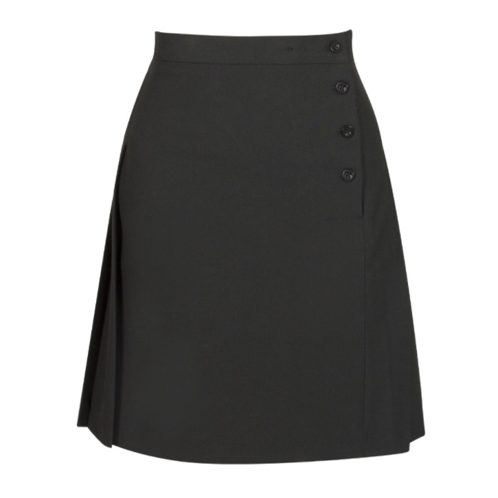 This school skirt features a flat front with pleated side and back, along with an adjustable waist which allows for a comfortable fit even with any growth spurts.